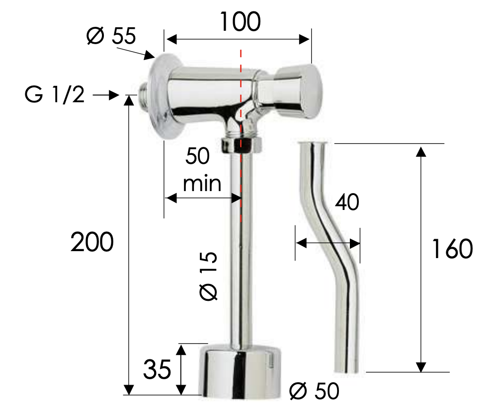 Remer Tempor Кран порционный для смыва, цвет: cromo TE855 и другие сантехнические изделия бренда характеризует надежность, высокое качество и продолжительный срок службы. Изделие в стилистике минимализм впечатляюще будет смотреться в различных цветовых решениях помещения.