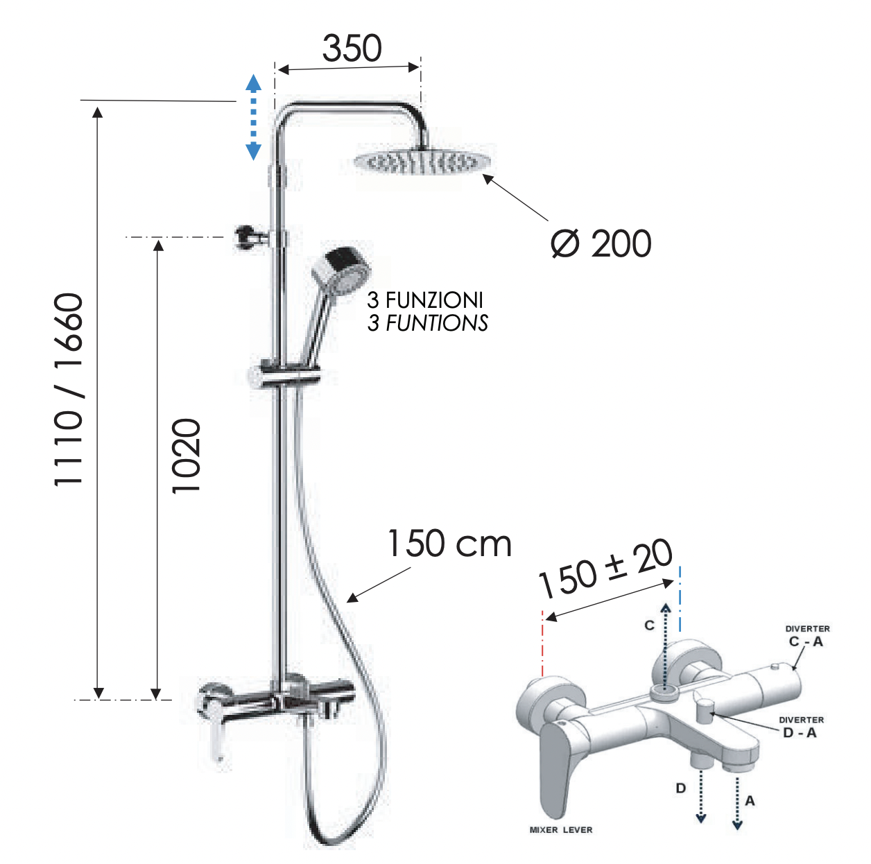 Remer Winner Душевая стойка: смеситель, верхний душ 20 см, лейка, штанга 166 см, шланг, цвет: cromo W34AUFM20 и другие сантехнические изделия бренда характеризует надежность, высокое качество и продолжительный срок службы. Изделие в стилистике минимализм впечатляюще будет смотреться в различных цветовых решениях помещения.