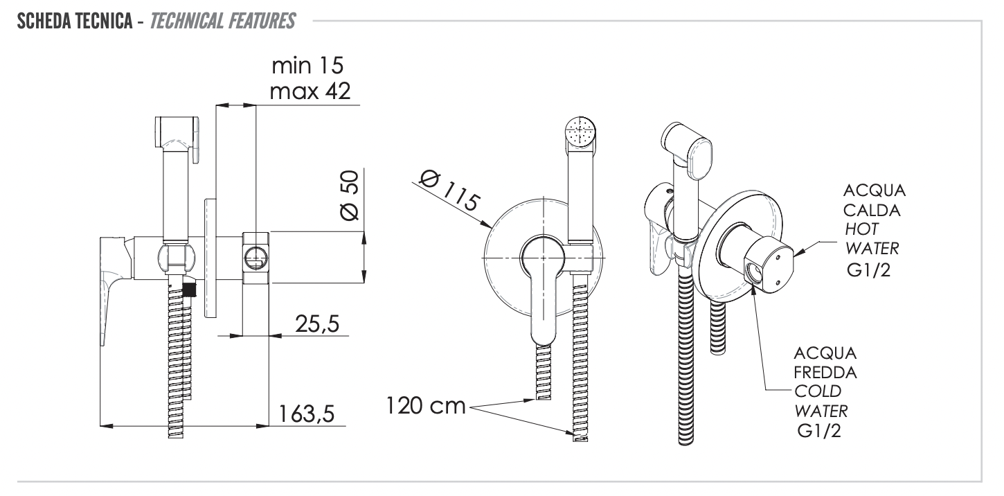 Remer Winner Гигиенический душ со смесителем, шланг 120 см, с встраиваемой частью, цвет: cromo W65W и другие сантехнические изделия бренда характеризует надежность, высокое качество и продолжительный срок службы. Изделие в стилистике лофт впечатляюще будет смотреться в различных цветовых решениях помещения.