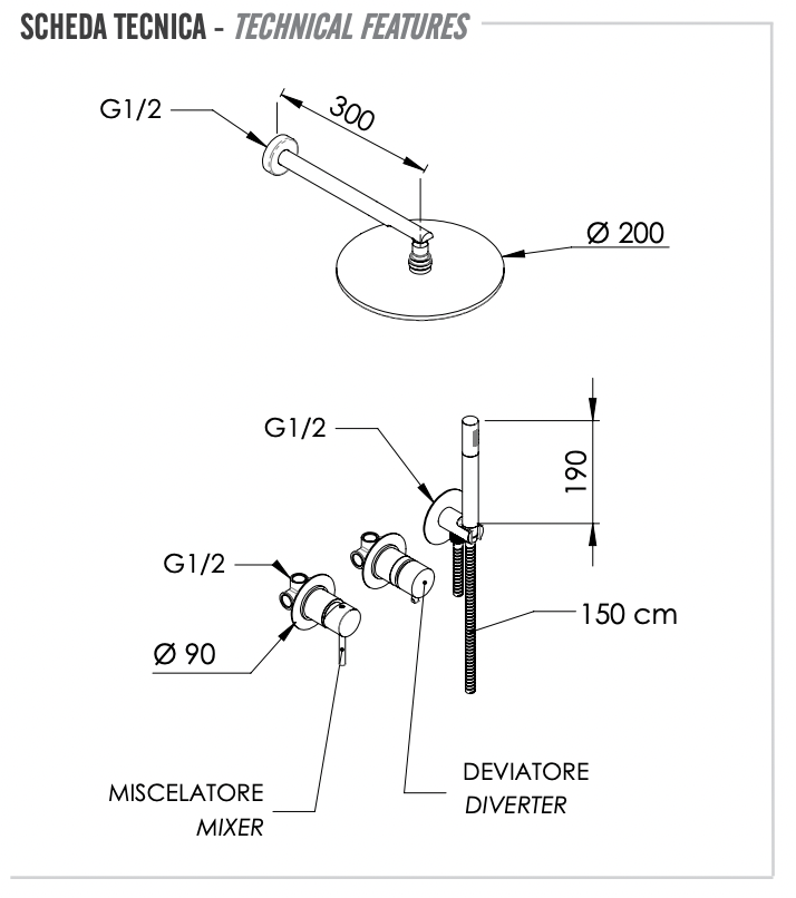 Remer X Style Душевой комплект: смеситель, верхний душ 20 см, лейка, шланг, цвет: oro spazzolato X96S02OBG и другие сантехнические изделия бренда характеризует надежность, высокое качество и продолжительный срок службы. Изделие в стилистике лофт впечатляюще будет смотреться в различных цветовых решениях помещения.