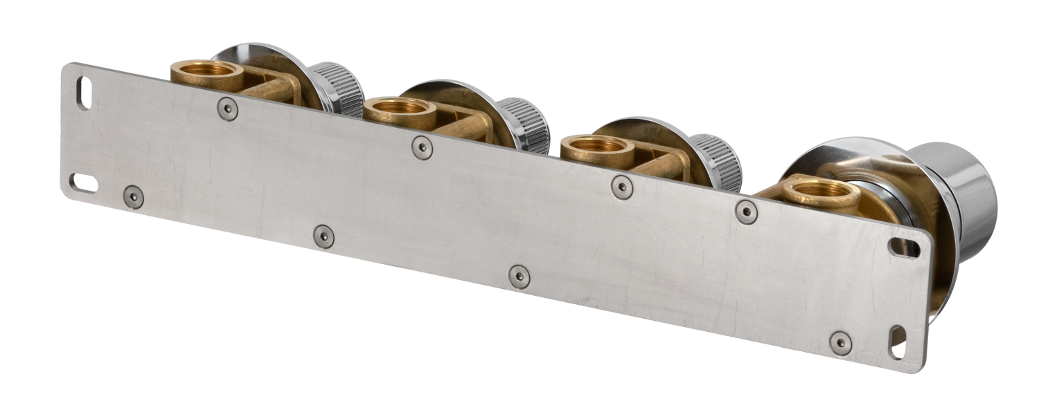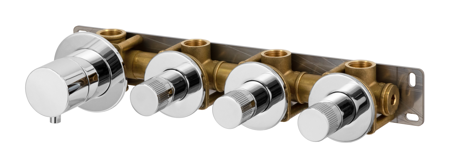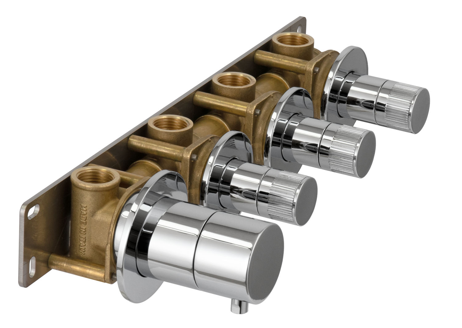 Remer X Style Смеситель для ванны встраиваемый, 3 потребителя, с скрытой частью, цвет: cromo N98D3P и другие сантехнические изделия бренда характеризует надежность, высокое качество и продолжительный срок службы. Изделие в стилистике арт-деко впечатляюще будет смотреться в различных цветовых решениях помещения.