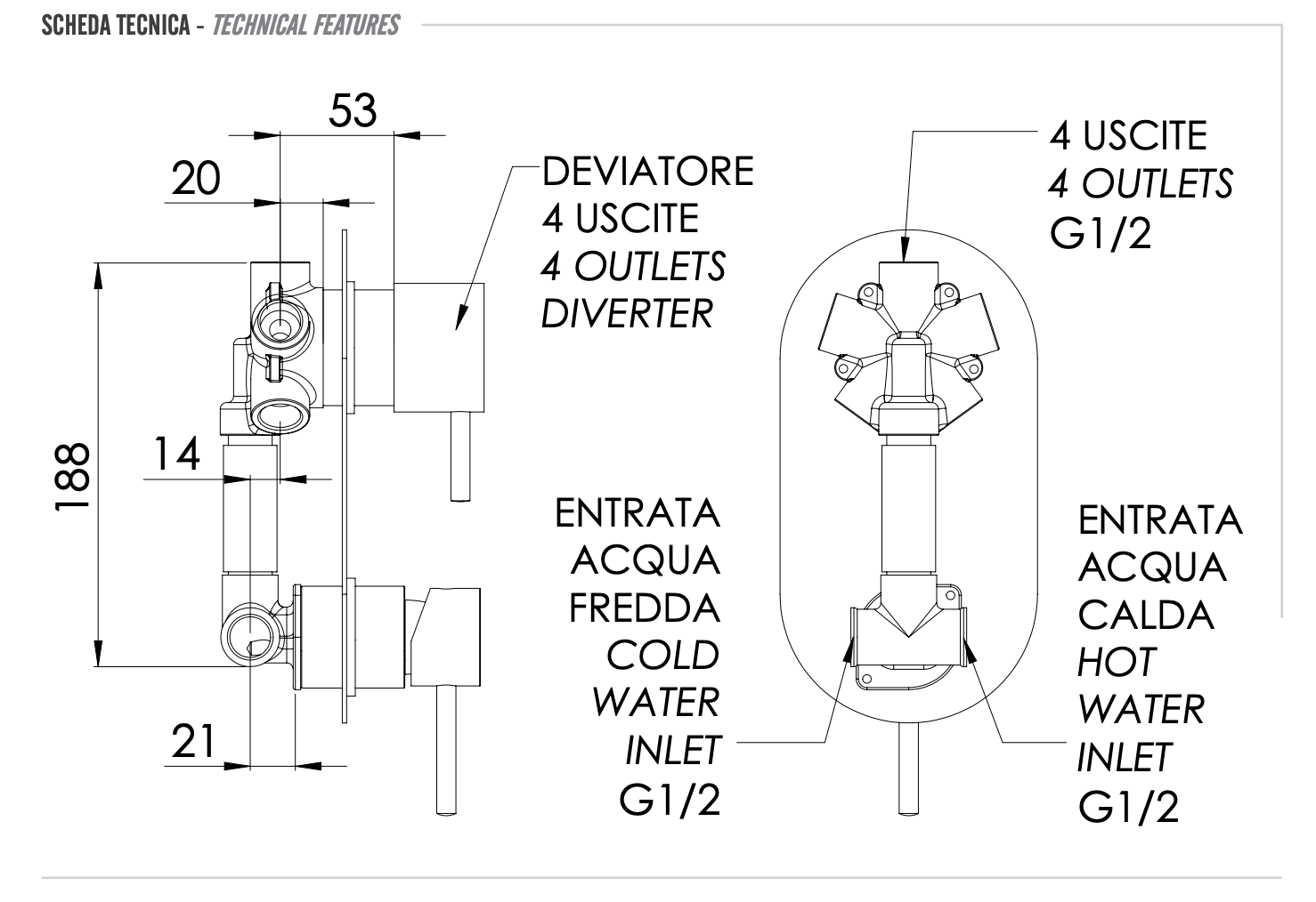 Закажите Remer X Style Смеситель для ванны встраиваемый на 4 потребителя, с встраиваемой частью, цвет: cromo X94 от производителя Remer, коллекция X Style в салоне европейской сантехники Дизайн Сантехники с быстрой доставкой по Москве. Представлены подробные характеристики и фотографии, которые позволят сделать правильный выбор и заказать товар.