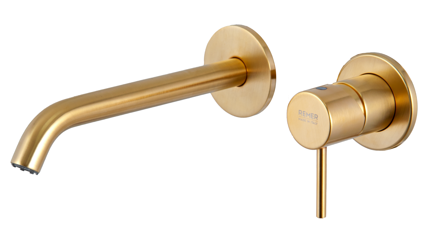 Remer X Style Смеситель для раковины без д/к, излив 18 см, с внутренней частью, цвет: oro spazzolato X15PLBG и другие сантехнические изделия бренда характеризует надежность, высокое качество и продолжительный срок службы. Изделие в стилистике лофт впечатляюще будет смотреться в различных цветовых решениях помещения.