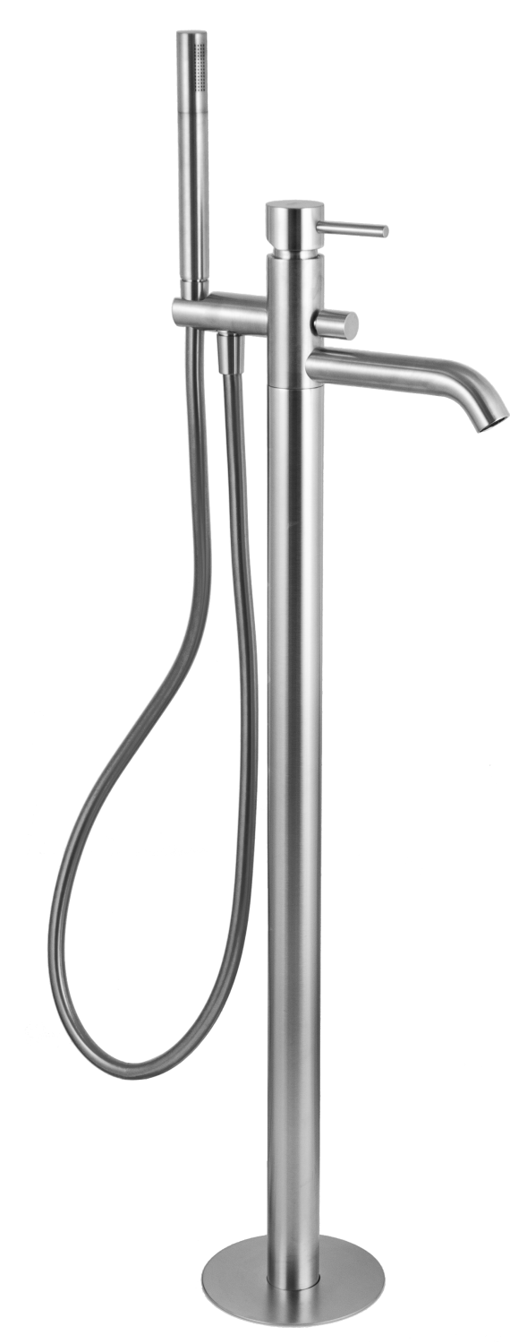 Remer X Style Смеситель для ванны напольный, излив 18 см, со скрытой частью, цвет: nichel spazzolato X08NP и другие сантехнические изделия бренда характеризует надежность, высокое качество и продолжительный срок службы. Изделие в стилистике лофт впечатляюще будет смотреться в различных цветовых решениях помещения.