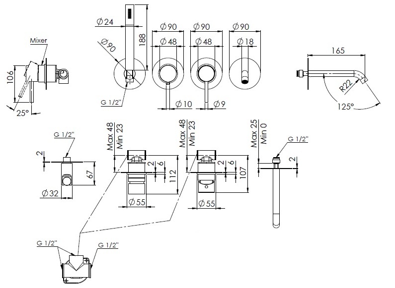 Remer X Style Смеситель для ванны, излив, лейка 1 режим, со скрытой частью, цвет: oro spazzolato X96S03ROXXBG и другие сантехнические изделия бренда характеризует надежность, высокое качество и продолжительный срок службы. Изделие в стилистике лофт впечатляюще будет смотреться в различных цветовых решениях помещения.
