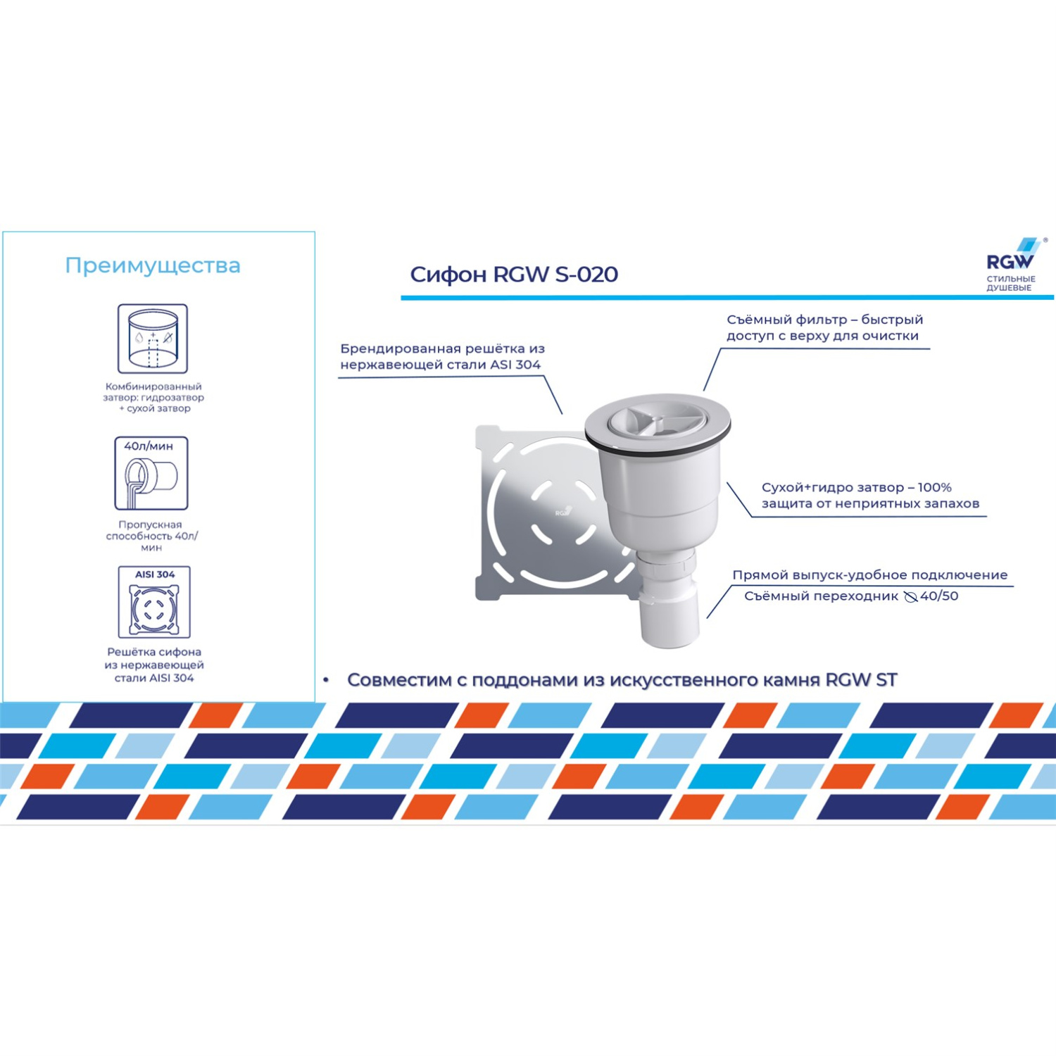 Закажите RGW Сифон для поддона, комбинированный, цвет: нержавеющая сталь 502402000-01 от производителя RGW, в салоне европейской сантехники Дизайн Сантехники с быстрой доставкой по Москве. Представлены подробные характеристики и фотографии, которые позволят сделать правильный выбор и заказать товар.