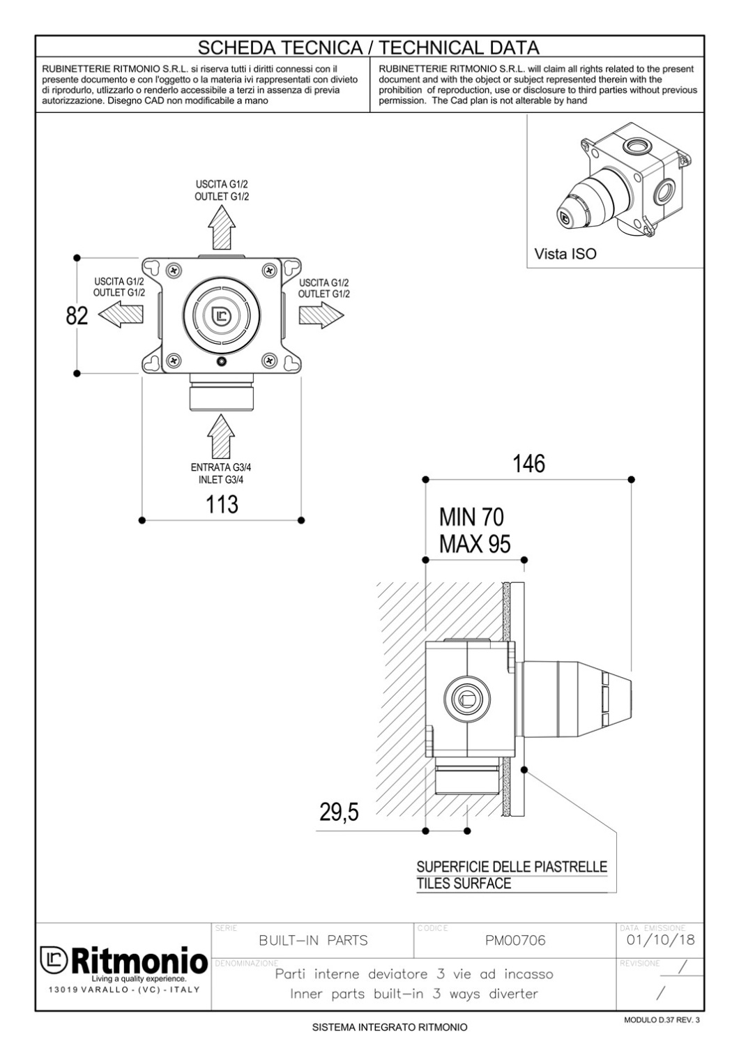 Ritmonio Встраиваемая часть переключателя, на 3 потребителя PM00706 и другие сантехнические изделия бренда характеризует надежность, высокое качество и продолжительный срок службы. Изделие в стилистике минимализм впечатляюще будет смотреться в различных цветовых решениях помещения.
