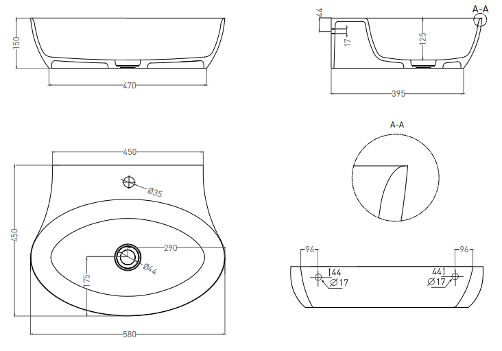 Salini Alda Wall 01 Раковина мебельная S-Stone, округлая, 58х45х15h см, цвет: по RAL, матовый 140321MF и другие сантехнические изделия бренда характеризует надежность, высокое качество и продолжительный срок службы. Изделие в стилистике минимализм впечатляюще будет смотреться в различных цветовых решениях помещения.