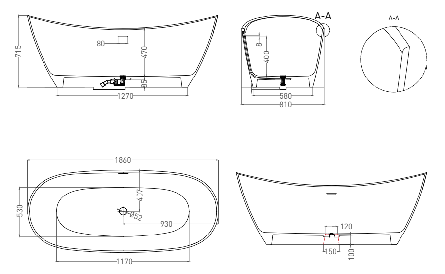 Salini Noemi Ванна из S-Sense отдельностоящая 186x81,5 см, цвет: белый глянцевый 101811G и другие сантехнические изделия бренда характеризует надежность, высокое качество и продолжительный срок службы. Изделие в стилистике минимализм впечатляюще будет смотреться в различных цветовых решениях помещения.