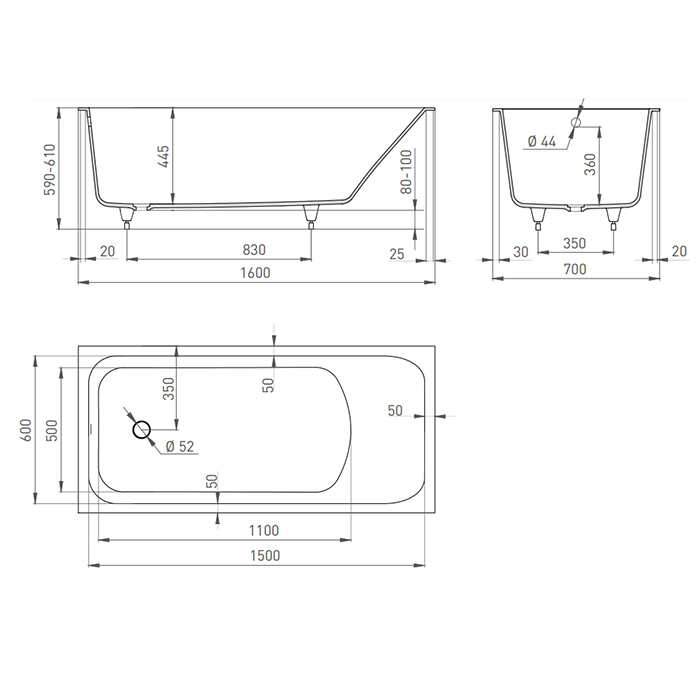 Цвет базовый: белый. Возможно изготовление ванны с интегрированным экраном.
