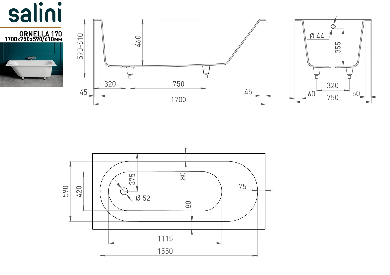Закажите Salini Ornella Ванна из S-Sense встраиваемая 170x75 см, цвет: RAL полностью матовый 102311MF от производителя Salini, коллекция Ornella в салоне европейской сантехники Дизайн Сантехники с быстрой доставкой по Москве. Представлены подробные характеристики и фотографии, которые позволят сделать правильный выбор и заказать товар.