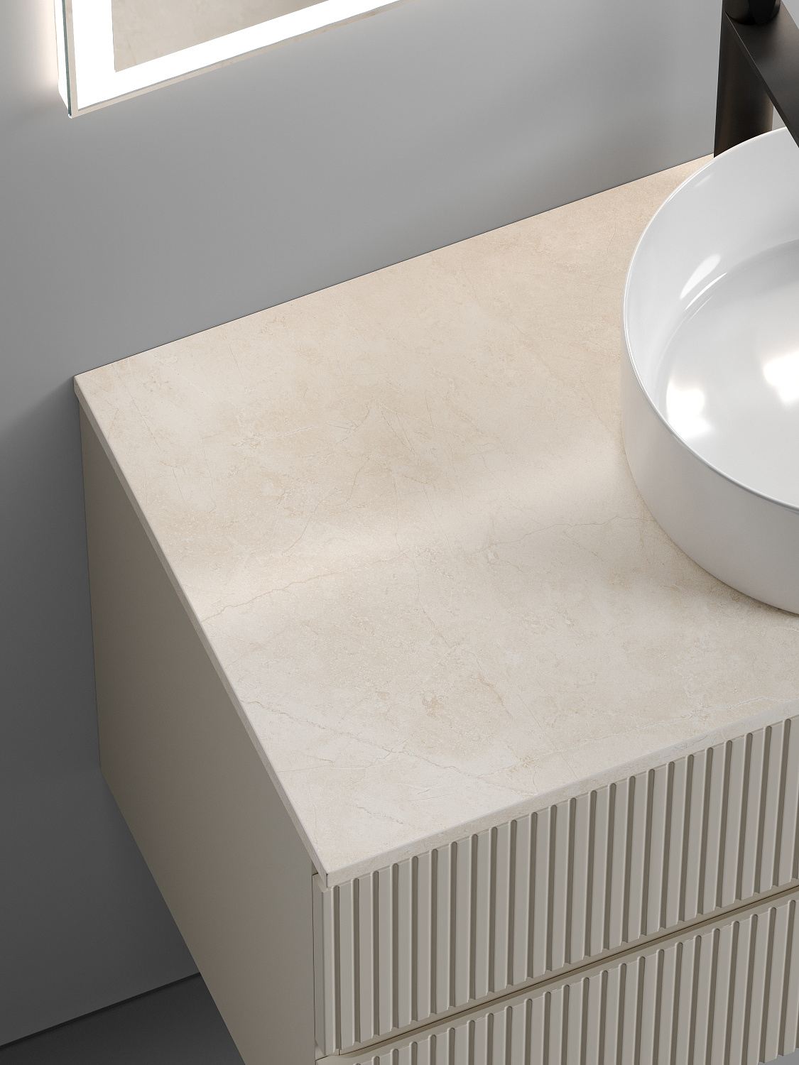 Sancos Столешница для мебели из керамогранита, размер 100х46 см, цвет: креман TT100A2X и другие сантехнические изделия бренда характеризует надежность, высокое качество и продолжительный срок службы. Изделие в стилистике неоклассика впечатляюще будет смотреться в различных цветовых решениях помещения.