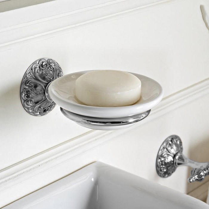 Sbordoni Flora Мыльница с керамической чашей, подвесная, цвет: хром FL100CR и другие сантехнические изделия бренда характеризует надежность, высокое качество и продолжительный срок службы. Изделие в стилистике английская классика впечатляюще будет смотреться в различных цветовых решениях помещения.