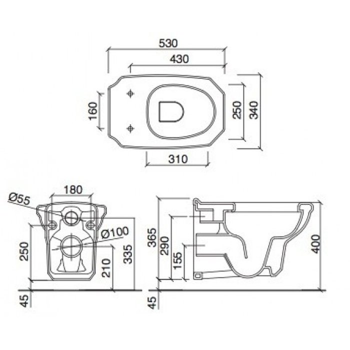Sbordoni Romana Унитаз подвесной 34х53 см, цвет белый 9026 и другие сантехнические изделия бренда характеризует надежность, высокое качество и продолжительный срок службы. Изделие в стилистике английская классика впечатляюще будет смотреться в различных цветовых решениях помещения.