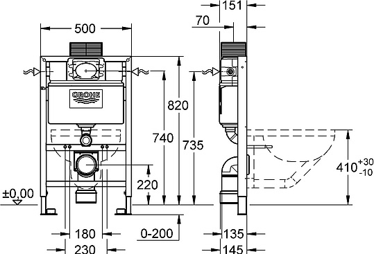Grohe Rapid SL Инсталляция для унитаза 82h см с креплением 38526000 и другие сантехнические изделия бренда характеризует надежность, высокое качество и продолжительный срок службы. Изделие в стилистике минимализм впечатляюще будет смотреться в различных цветовых решениях помещения.