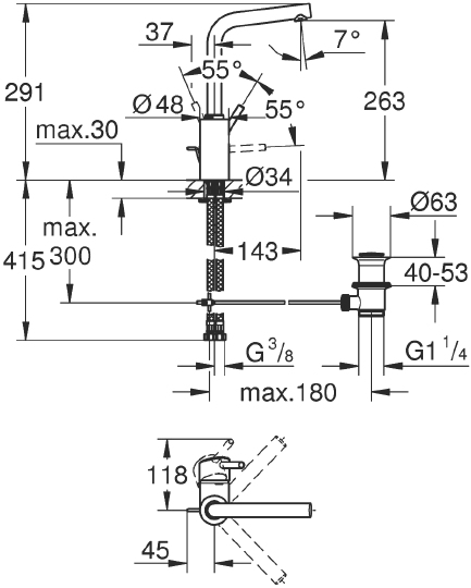 Grohe Concetto Смеситель для раковины, с д/к, высота излива 26,3 см, цвет: хром 23739002 и другие сантехнические изделия бренда характеризует надежность, высокое качество и продолжительный срок службы. Изделие в стилистике неоклассика впечатляюще будет смотреться в различных цветовых решениях помещения.
