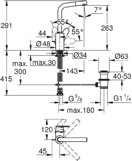 Grohe Eurodisc Cosmopolitan Смеситель для раковины высокий, с д/к, высота излива 26,3 см, цвет: хром 23054003 и другие сантехнические изделия бренда характеризует надежность, высокое качество и продолжительный срок службы. Изделие в стилистике минимализм впечатляюще будет смотреться в различных цветовых решениях помещения.