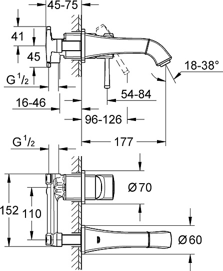 Grohe Grandera Смеситель для раковины встраиваемый, длина излива 17,7 см, цвет: хром/золото 19929IG0 и другие сантехнические изделия бренда характеризует надежность, высокое качество и продолжительный срок службы. Изделие в стилистике арт-деко впечатляюще будет смотреться в различных цветовых решениях помещения.