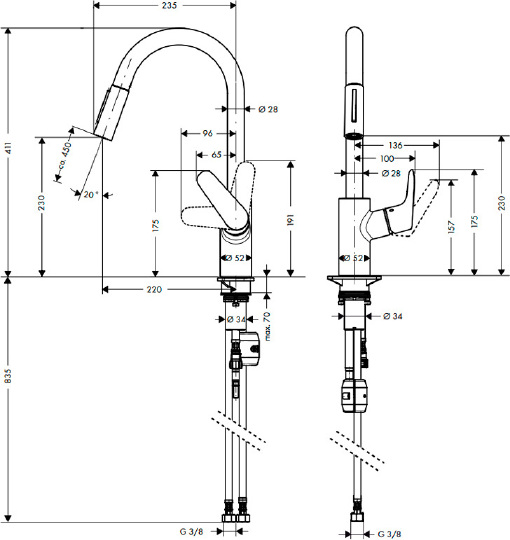 Hansgrohe Focus M41 Смеситель для кухонной мойки 240 с выдвижным изливом, цвет: нержавеющая сталь 31815800 и другие сантехнические изделия бренда характеризует надежность, высокое качество и продолжительный срок службы. Изделие в стилистике лофт впечатляюще будет смотреться в различных цветовых решениях помещения.