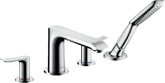 Hansgrohe Metris Смеситель на борт ванны, с ручным душем, внешняя часть, цвет: хром 31442000 и другие сантехнические изделия бренда характеризует надежность, высокое качество и продолжительный срок службы. Изделие в стилистике hi-tech впечатляюще будет смотреться в различных цветовых решениях помещения.