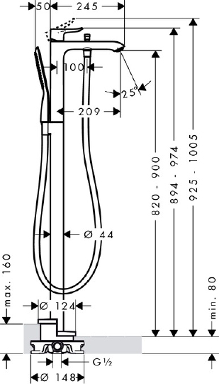 Hansgrohe Metris Смеситель для ванны напольный однорычажный с изливом 20,9 см, отдельн. цвет: хром 31471000 и другие сантехнические изделия бренда характеризует надежность, высокое качество и продолжительный срок службы. Изделие в стилистике hi-tech впечатляюще будет смотреться в различных цветовых решениях помещения.