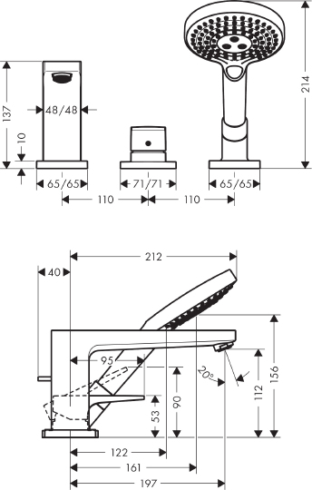 Hansgrohe Metropol Смеситель на борт ванны на 3 отв. однорыч., с руч. душем, внеш. часть, цвет: хром 32550000 и другие сантехнические изделия бренда характеризует надежность, высокое качество и продолжительный срок службы. Изделие в стилистике hi-tech впечатляюще будет смотреться в различных цветовых решениях помещения.