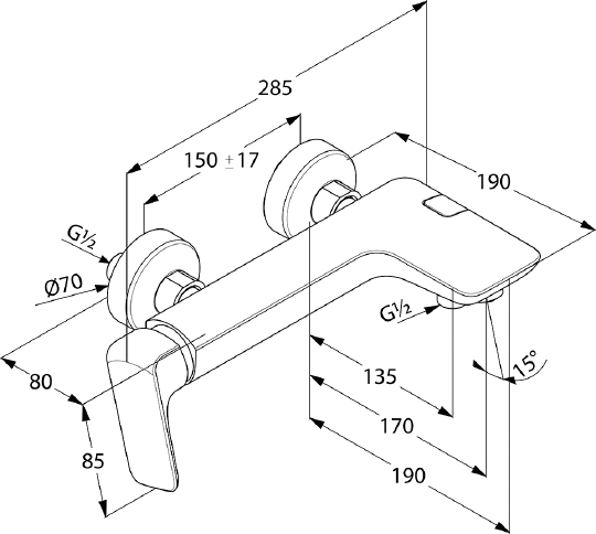 Kludi Ameo Смеситель для ванны и душа DN 15 настенный, цвет: хром 416710575 и другие сантехнические изделия бренда характеризует надежность, высокое качество и продолжительный срок службы. Изделие в стилистике hi-tech впечатляюще будет смотреться в различных цветовых решениях помещения.