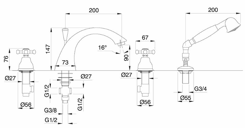 Смеситель Migliore Lady на борт ванны 18837 и другие сантехнические изделия бренда характеризует надежность, высокое качество и продолжительный срок службы. Изделие в стилистике английская классика впечатляюще будет смотреться в различных цветовых решениях помещения.