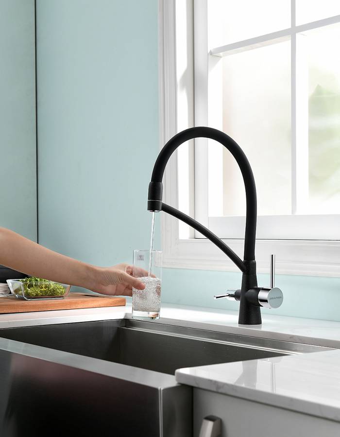 Paulmark Siеgen Смеситель для кухни с гибким изливом, цвет: черный Si213111-308 и другие сантехнические изделия бренда характеризует надежность, высокое качество и продолжительный срок службы. Изделие в стилистике лофт впечатляюще будет смотреться в различных цветовых решениях помещения.