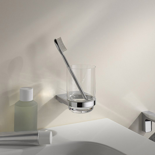Keuco Collection Moll Держатель стакана, подвесной, в комплекте со стаканом цвет: хром 12750 019000 и другие сантехнические изделия бренда характеризует надежность, высокое качество и продолжительный срок службы. Изделие в стилистике hi-tech впечатляюще будет смотреться в различных цветовых решениях помещения.