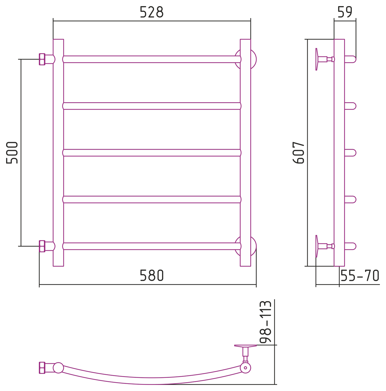 Стилье Версия-Б2 Полотенцесушитель водяной 50x50h, цвет: черный глянцевый 17612-5050 и другие сантехнические изделия бренда характеризует надежность, высокое качество и продолжительный срок службы. Изделие в стилистике минимализм впечатляюще будет смотреться в различных цветовых решениях помещения.