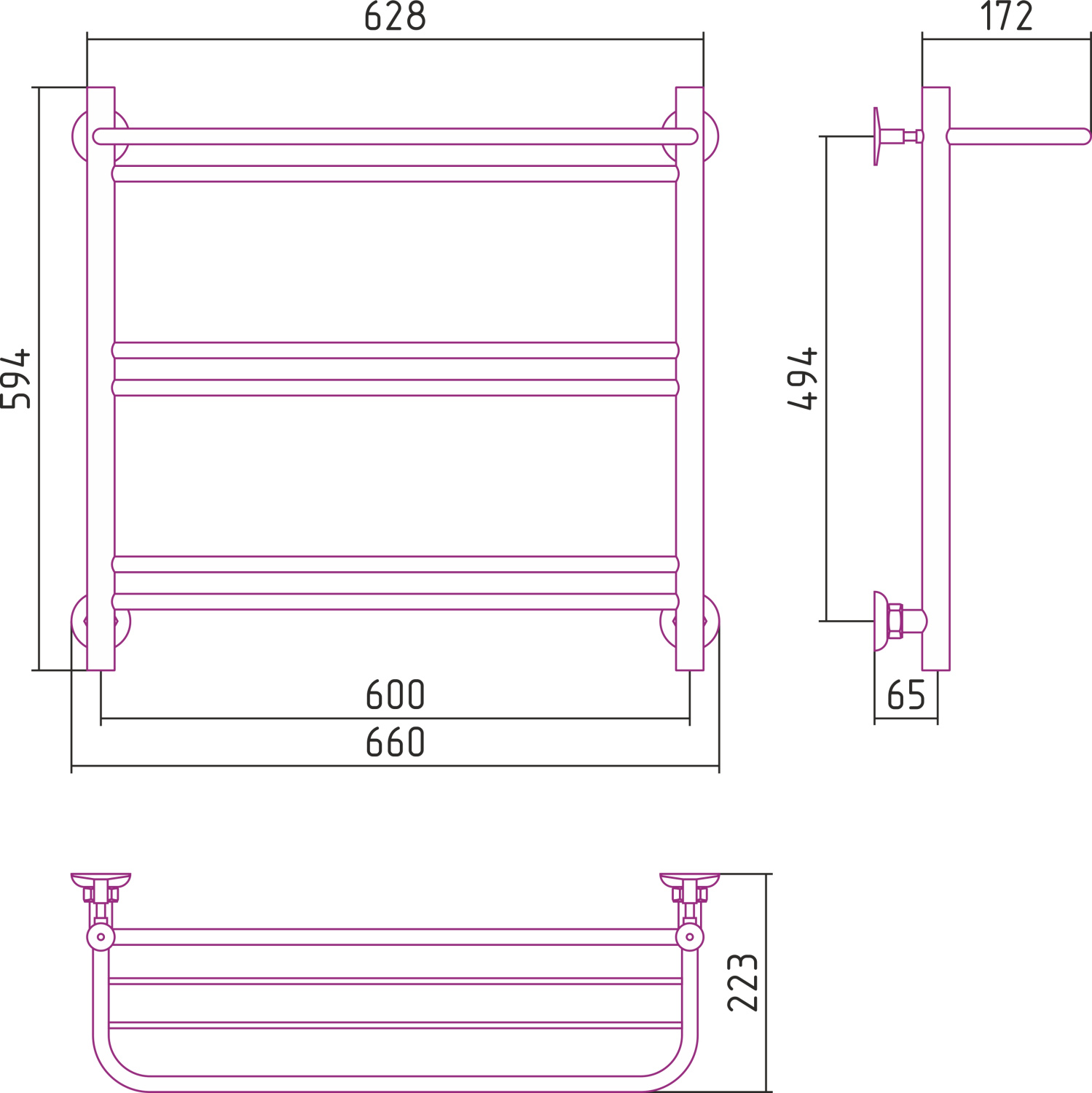 Стилье Версия-Н1 Полотенцесушитель водяной 60x60h, цвет черный глянцевый 17621-6060 и другие сантехнические изделия бренда характеризует надежность, высокое качество и продолжительный срок службы. Изделие в стилистике минимализм впечатляюще будет смотреться в различных цветовых решениях помещения.