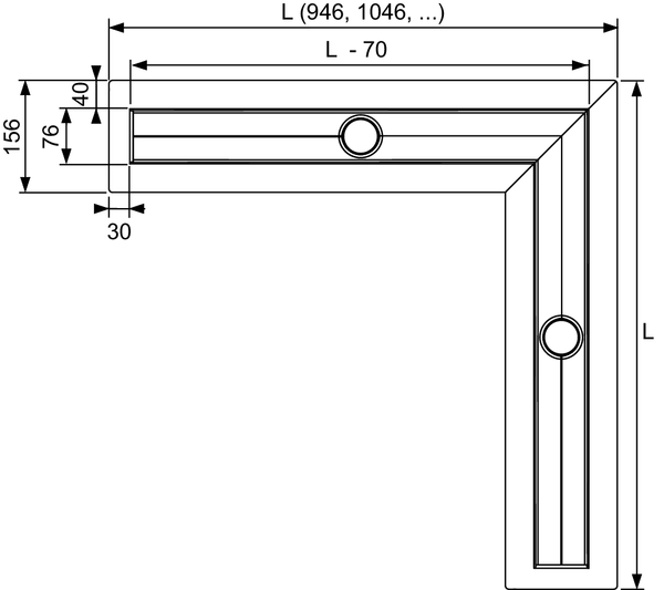 Длина без облицовки с фланцем = 946 x 946, 1046 x 1046, ... мм