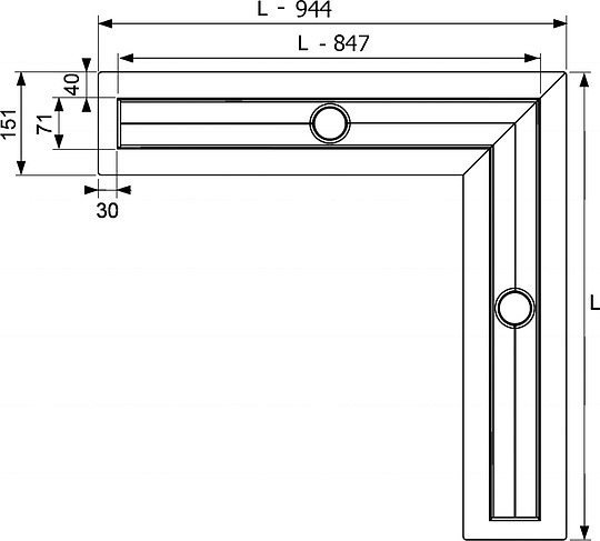 Угловой душевой канал 90° для монтажа в бетонной стяжке, с фланцем и гидроизоляционной лентой Seal System