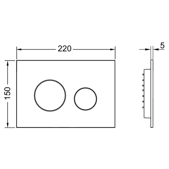 Панель смыва для смывных бачков Tece, фронтальная или верхняя установка. Сверхплоская панель смыва с двумя установленными на пружинах клавишами. Совместима с контейнером для гигиенических таблеток. Размеры (Ш x В x Г): 216 x 145 x 6 мм