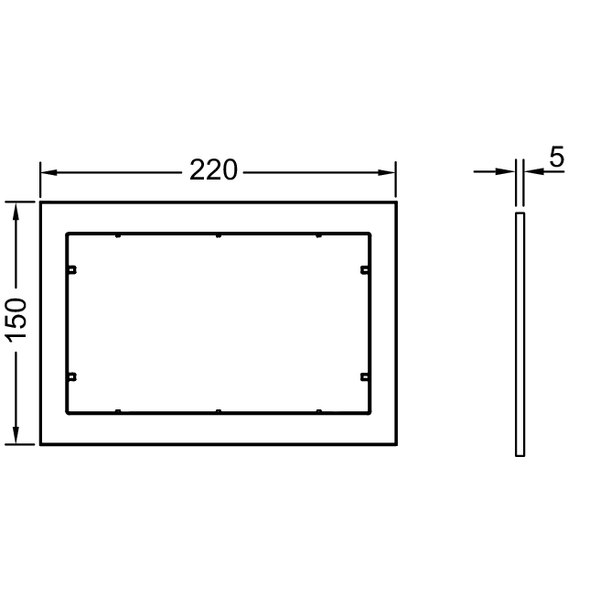 Для использования вместе с панелью смыва Tece Now. Используется как промежуточная дистанционная рамка или для монтажа панели смыва Tece Now на уровне стены. Размеры (Ш x В x Г): 220 x 150 x 5 мм