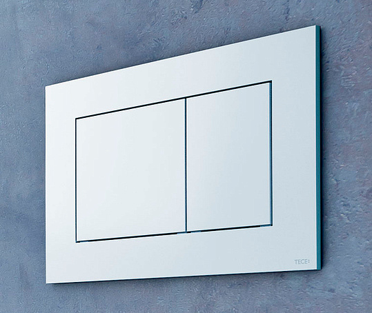 Панель смыва для смывных бачков Tece, фронтальная или верхняя установка. Плоская пластиковая панель смыва, клавиши с резиновыми накладками с обеих сторон. В комплект входят толкатели и крепежные элементы. Подходит для установки на уровне стены вместе с монтажной рамкой унитаза и дистанционной рамкой Tece now. Совместима с контейнером для гигиенических таблеток.
