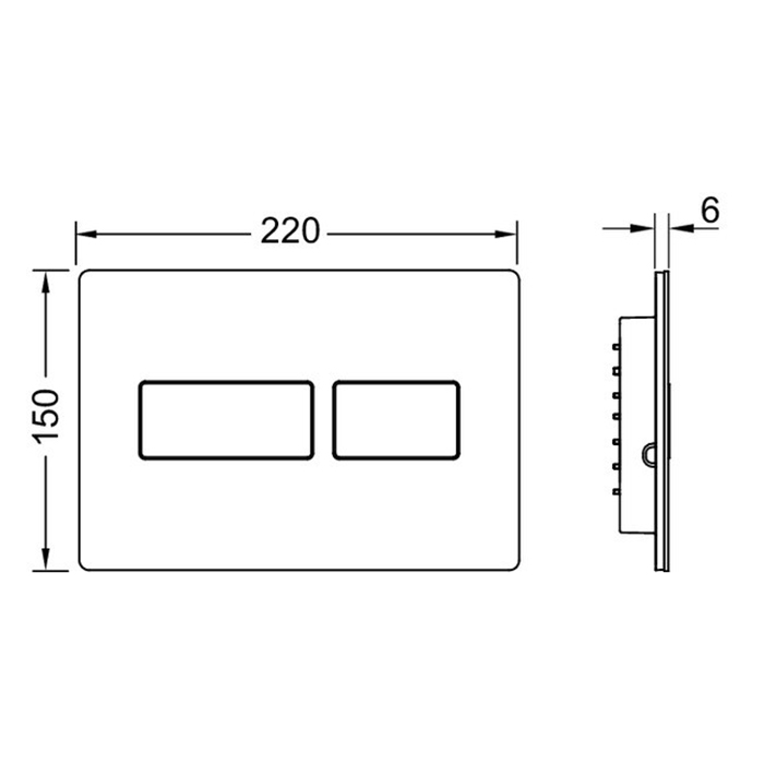 Панель смыва для смывных бачков Tece, фронтальное или верхнее расположение панели смыва. Очень плоская металлическая панель смыва, клавиши с резиновыми накладками, в комплект входят толкатели и крепежные элементы. Панель смыва имеет скрытое винтовое крепление.