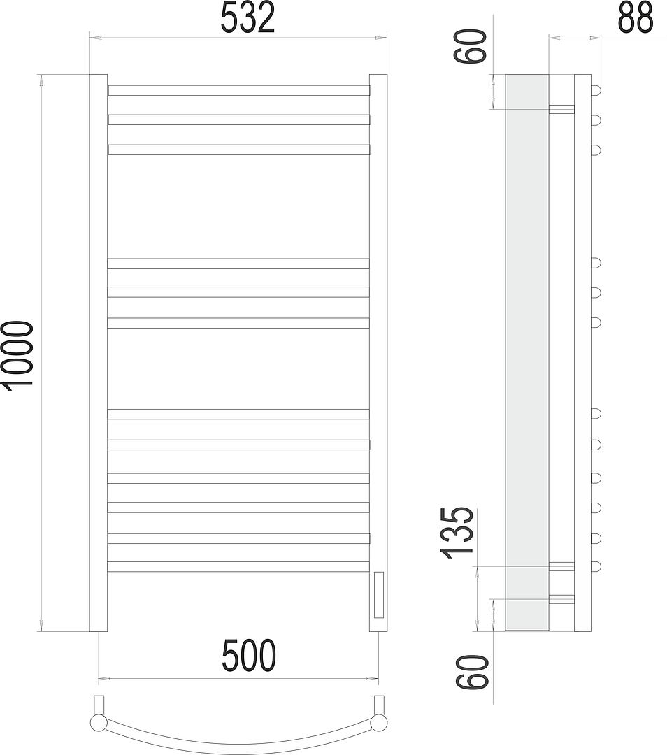 Закажите Terminus Классик Полотенцесушитель электрический 53,2x100h, цвет без покрытия 4670078527325 от производителя Terminus, коллекция Классик в салоне европейской сантехники Дизайн Сантехники с быстрой доставкой по Москве. Представлены подробные характеристики и фотографии, которые позволят сделать правильный выбор и заказать товар.