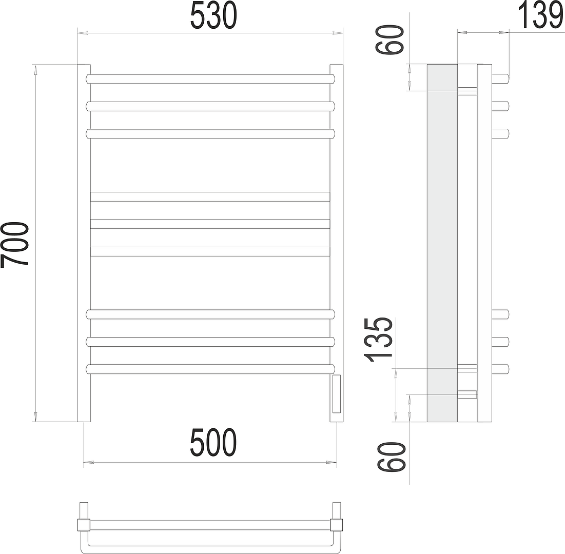 Terminus Соренто Полотенцесушитель электрический 53x70h, цвет без покрытия 4670078531490 и другие сантехнические изделия бренда характеризует надежность, высокое качество и продолжительный срок службы. Изделие в стилистике минимализм впечатляюще будет смотреться в различных цветовых решениях помещения.