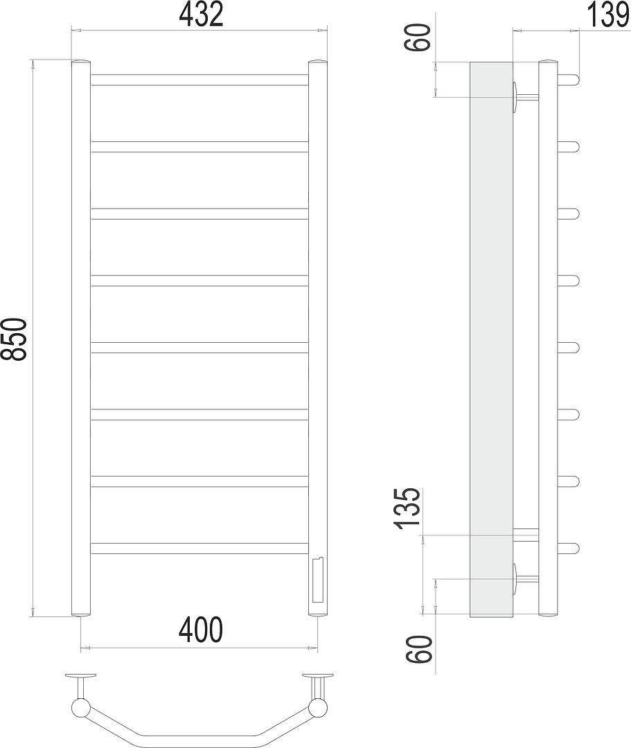 Закажите Terminus Виктория Полотенцесушитель электрический 43,2x85h, цвет без покрытия 4670078531209 от производителя Terminus, коллекция Виктория в салоне европейской сантехники Дизайн Сантехники с быстрой доставкой по Москве. Представлены подробные характеристики и фотографии, которые позволят сделать правильный выбор и заказать товар.