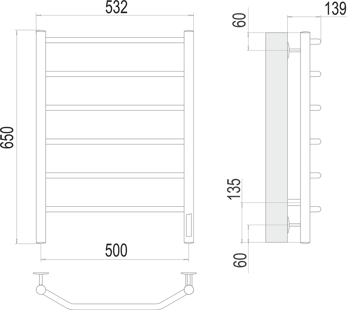 Terminus Виктория Полотенцесушитель электрический 53,2x65h, цвет без покрытия 4670078531193 и другие сантехнические изделия бренда характеризует надежность, высокое качество и продолжительный срок службы. Изделие в стилистике минимализм впечатляюще будет смотреться в различных цветовых решениях помещения.