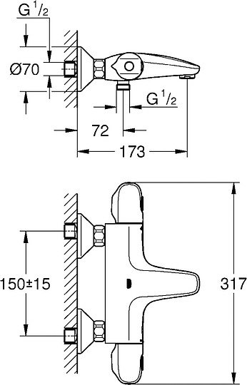 Grohe Grohtherm 1000 New Термостатический смеситель для ванны, цвет: хром 34155003 и другие сантехнические изделия бренда характеризует надежность, высокое качество и продолжительный срок службы. Изделие в стилистике hi-tech впечатляюще будет смотреться в различных цветовых решениях помещения.