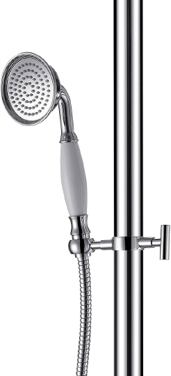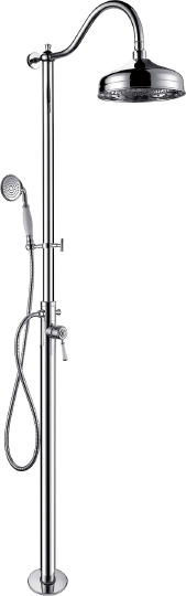 Timo Arisa Душевая стойка с верхним душем, цвет: хром глянцевый SX-5000/00 и другие сантехнические изделия бренда характеризует надежность, высокое качество и продолжительный срок службы. Изделие в стилистике прованс впечатляюще будет смотреться в различных цветовых решениях помещения.