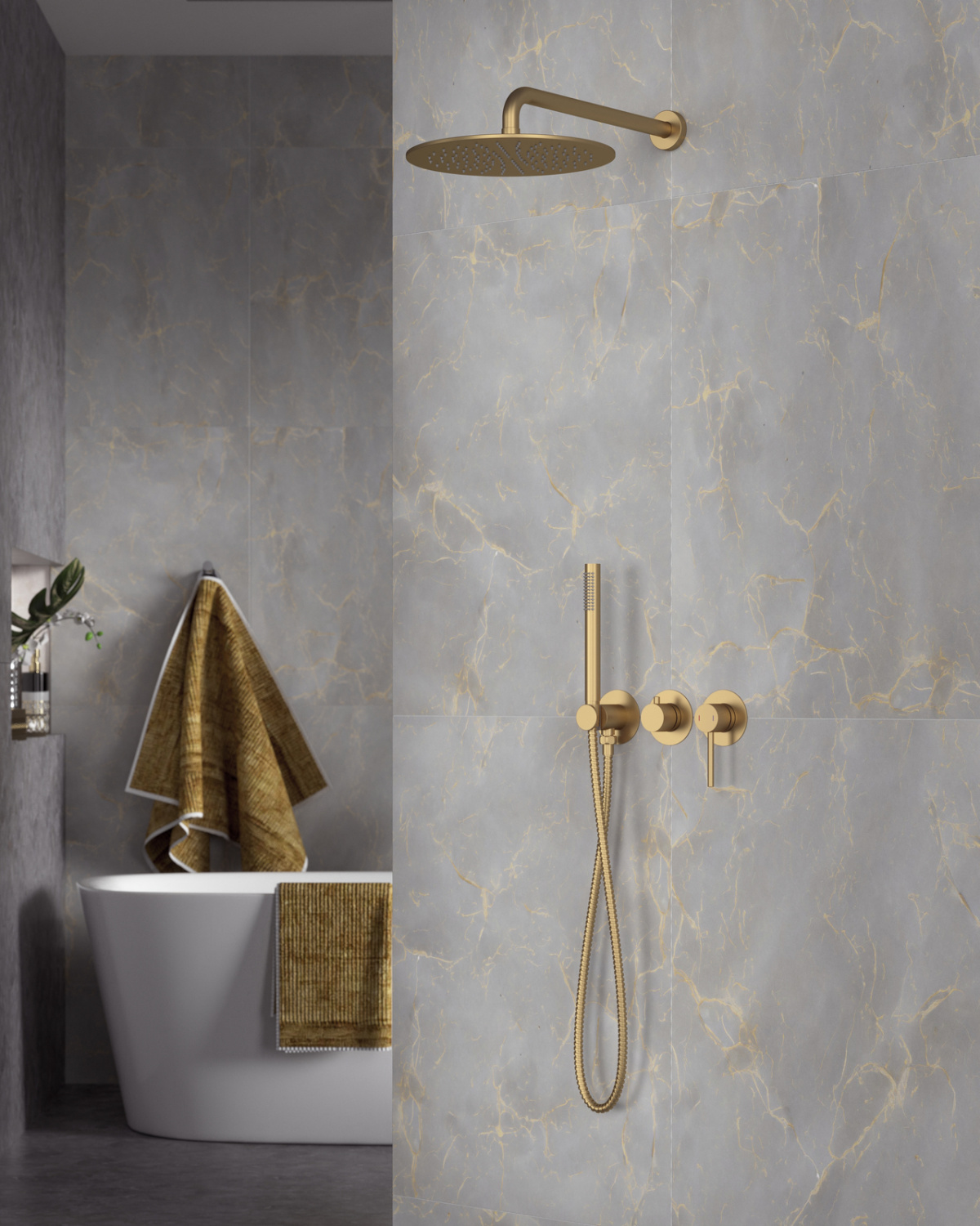 Timo Saona Душевой комплект встраиваемый, цвет: золото матовое SX-2349/17SM и другие сантехнические изделия бренда характеризует надежность, высокое качество и продолжительный срок службы. Изделие в стилистике минимализм впечатляюще будет смотреться в различных цветовых решениях помещения.