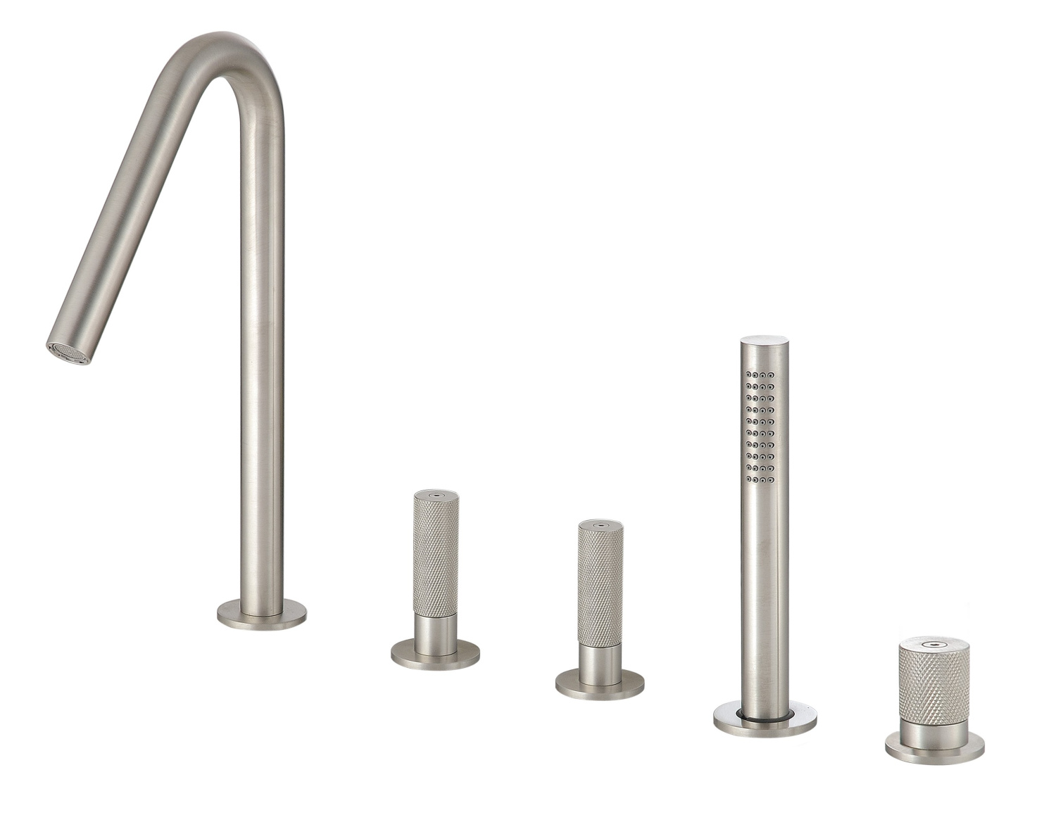 Treemme 22MM Смеситель на борт ванны, на 5 отверстий, цвет: нержавеющая сталь 6006IS и другие сантехнические изделия бренда характеризует надежность, высокое качество и продолжительный срок службы. Изделие в стилистике лофт впечатляюще будет смотреться в различных цветовых решениях помещения.