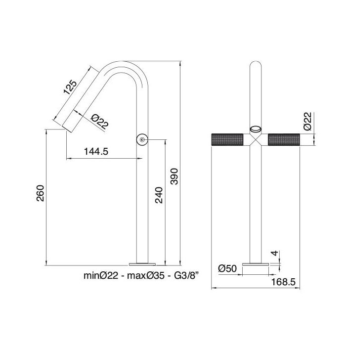 Treemme 22MM Смеситель для раковины, цвет: нержавеющая сталь 6015IS и другие сантехнические изделия бренда характеризует надежность, высокое качество и продолжительный срок службы. Изделие в стилистике лофт впечатляюще будет смотреться в различных цветовых решениях помещения.