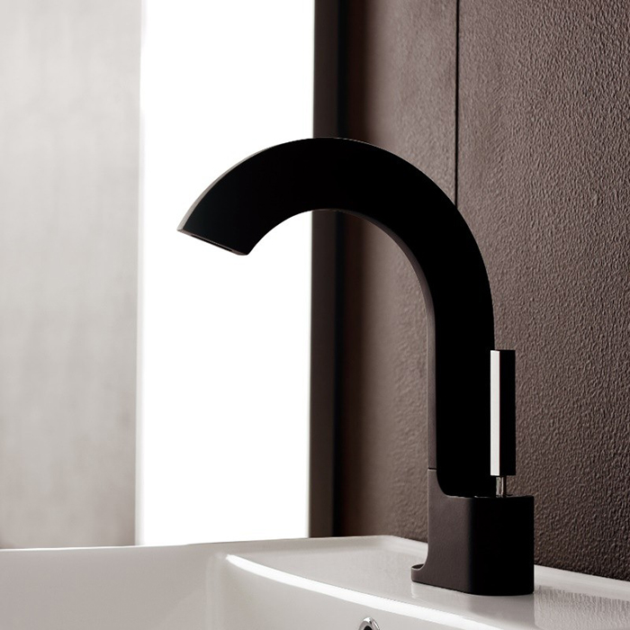 Treemme Cut Смеситель для раковины, цвет: черный/хром 3310NC и другие сантехнические изделия бренда характеризует надежность, высокое качество и продолжительный срок службы. Изделие в стилистике hi-tech впечатляюще будет смотреться в различных цветовых решениях помещения.