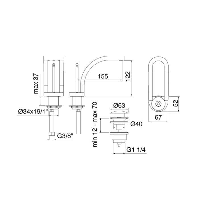 Treemme Philo Смеситель для раковины, цвет: черный/хром 7010NC и другие сантехнические изделия бренда характеризует надежность, высокое качество и продолжительный срок службы. Изделие в стилистике hi-tech впечатляюще будет смотреться в различных цветовых решениях помещения.