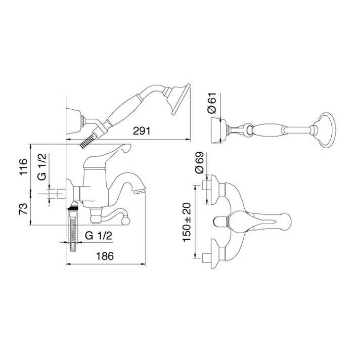 Treemme Piccadilly Смеситель для ванны, цвет: хром 2100CC и другие сантехнические изделия бренда характеризует надежность, высокое качество и продолжительный срок службы. Изделие в стилистике прованс впечатляюще будет смотреться в различных цветовых решениях помещения.